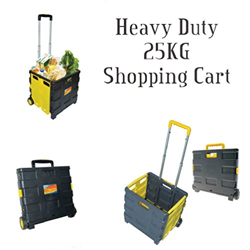 Cart collapses and folds into an easy to carry compact case Lightweight, durable, rust proof, plastic, sturdy construction Snap on side support braces for additional strength Telescopic aluminium handle with contoured plastic grip Smooth rolling rubber tyres Folds or assembles in seconds Large 25kg capacity for all kinds of items Very portable ,take it anywhere you want Open Dimensions - 380mm x 330mm x 360 mm Closed Dimensions - 380mm x 360 x 80mm Handle Height Approx: 865mm