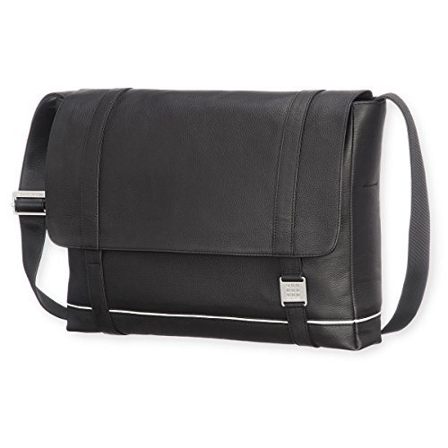 - Moleskine's Leather Lineage Messenger Bag, made from 100% soft, black leather.